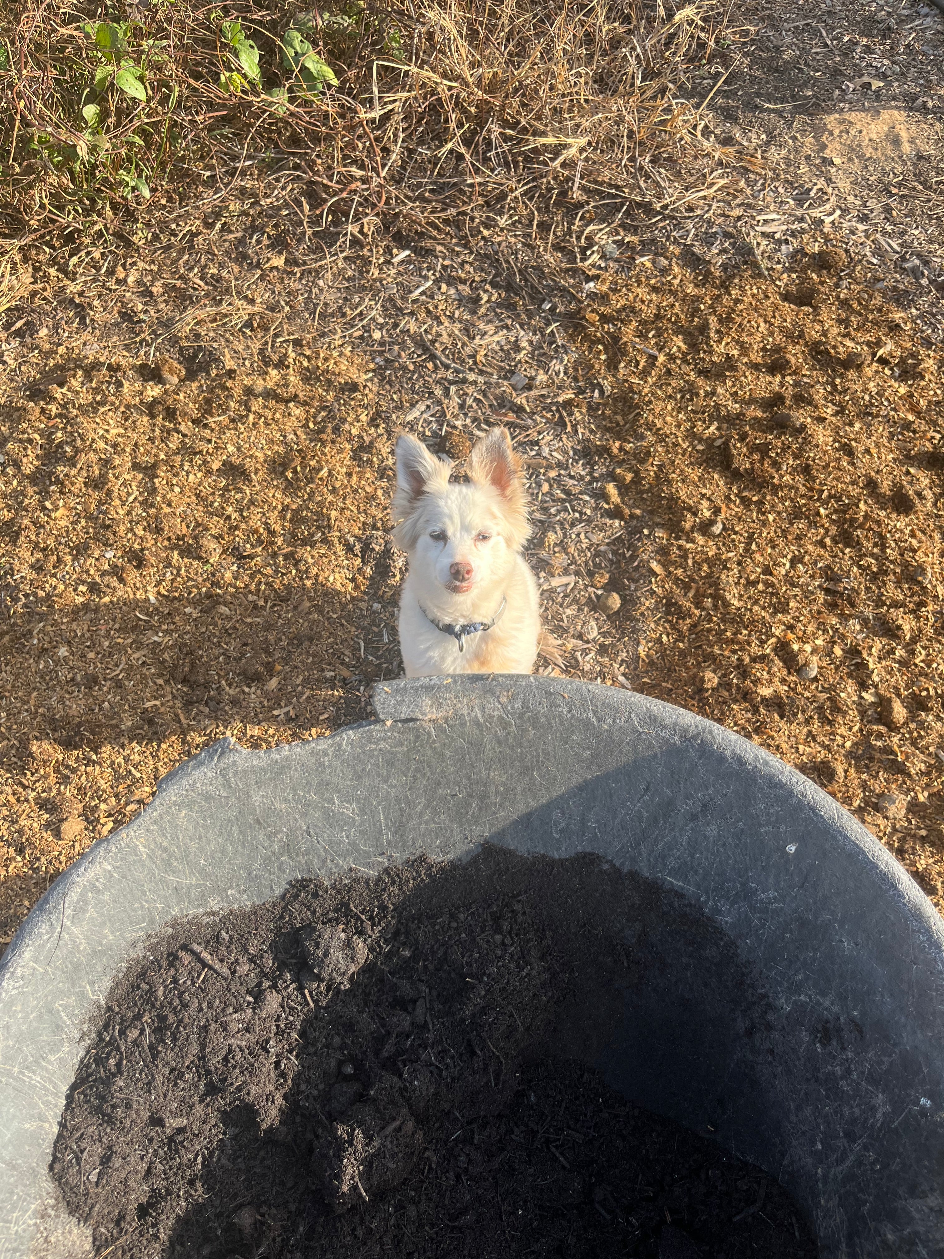 Leia (right) is a new addition to the farm as of 2025, and she has a already made her mark with her electric personality. She loves to bug Levi and pretend to help us pull weeds.
